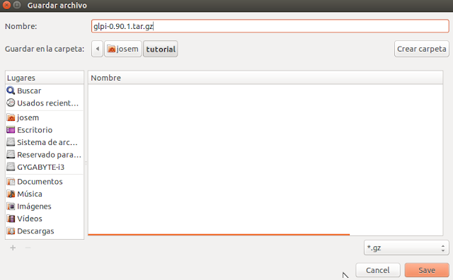 Primero copiaremos la ruta, para ello sombreamos la ruta indicada donde dice Carpeta padre: /home/josem/Descargas.